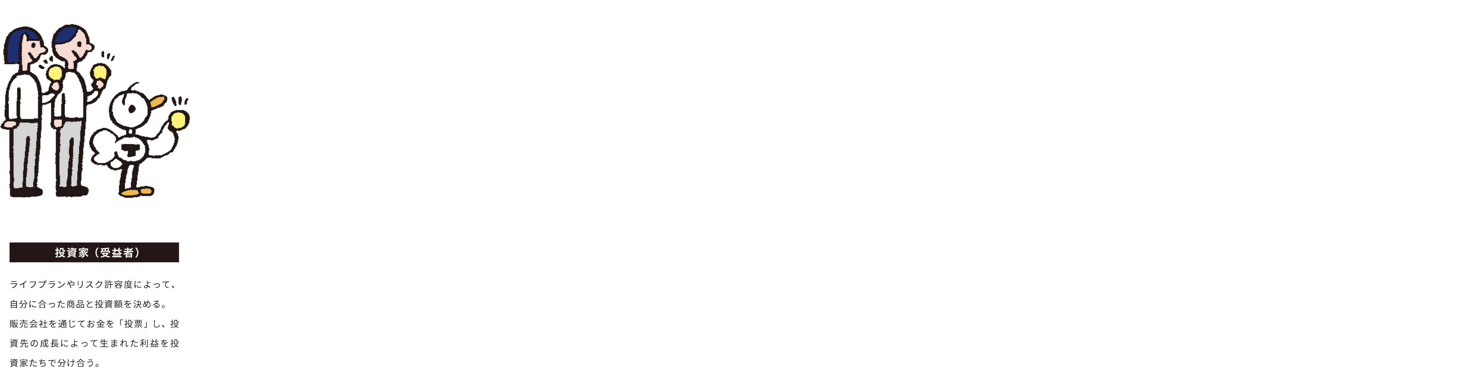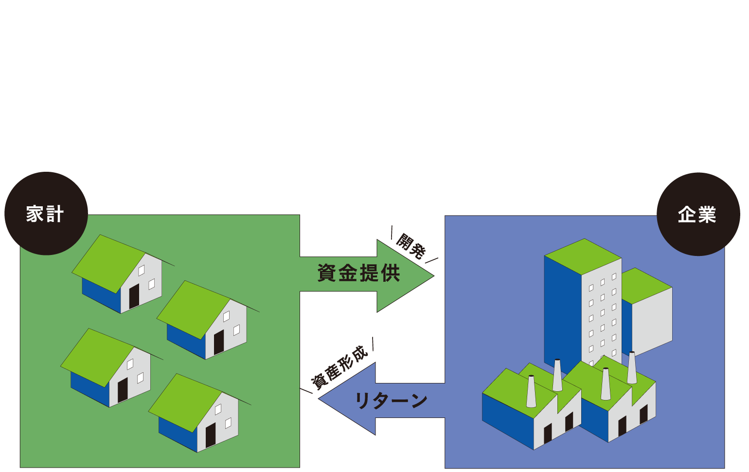 投資信託という商品を通じて、お金の循環を生み、 よりよい社会の実現につなげること。 将来のために必要な資産を増やすこと。